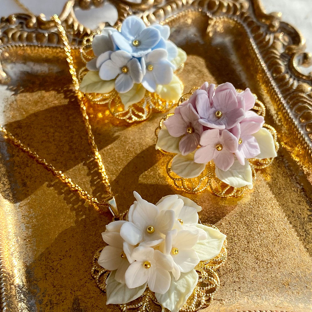樹脂粘土で紫陽花アクセサリーを作るワークショップです。