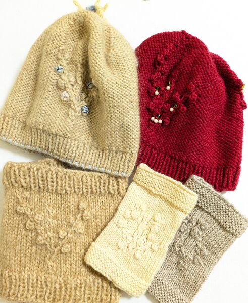 ニットのハンドウォーマー・ネックウォーマー・帽子