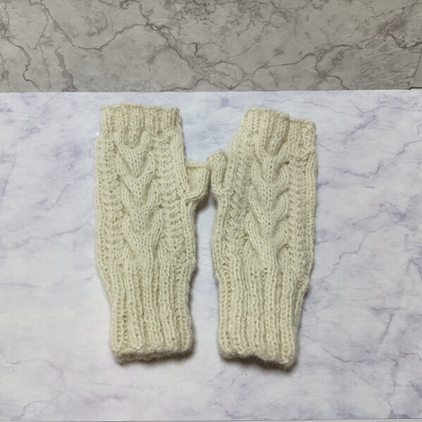 こだわりの毛糸を使用したハンドウォーマーなどニット小物