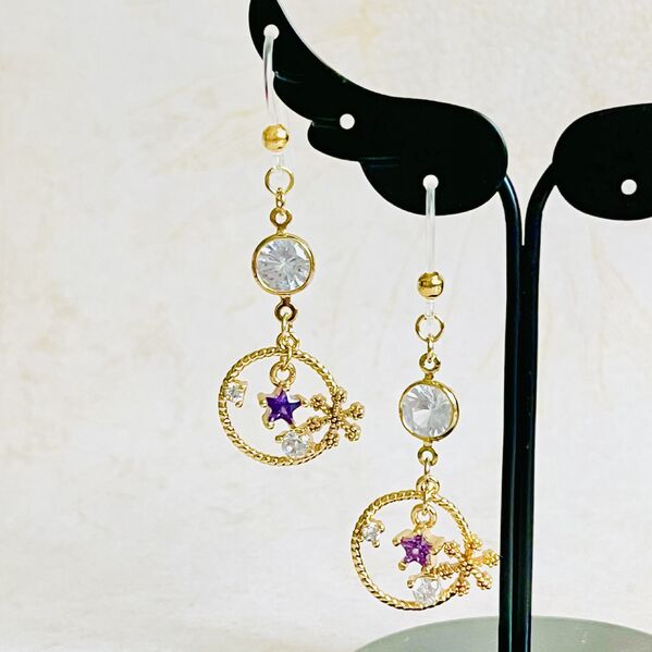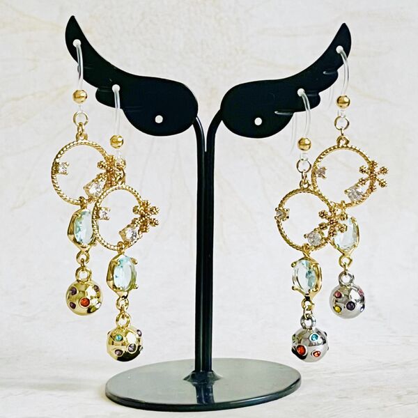 雪の結晶と星のピアス