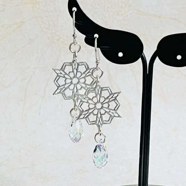 雪の結晶とクリスタルのピアス・初雪
