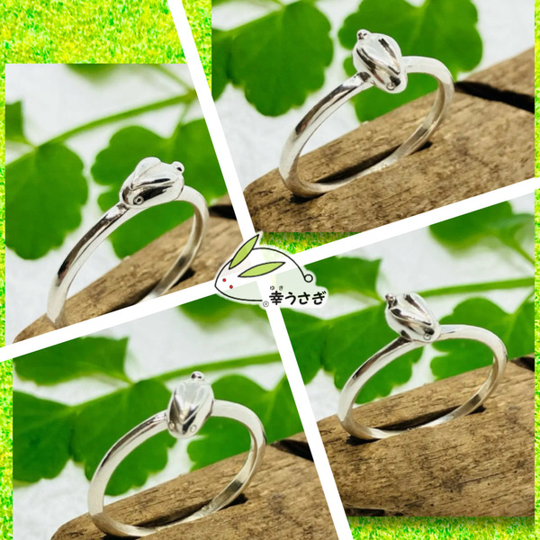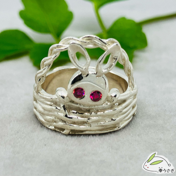 籠の中からこんにちは、籠入りうさぎのリング_光沢仕上げ(925,ジルコニア-ローズカラー/11号)