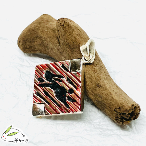 駆け抜ける野ウサギのペンダントトップ(sv925,擬革紙,新漆)