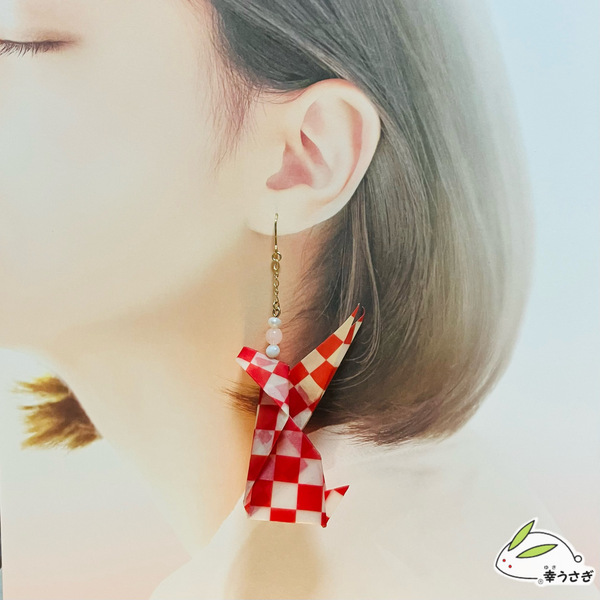折り紙うさぎのピアス(特大サイズ・片耳用・赤&白)