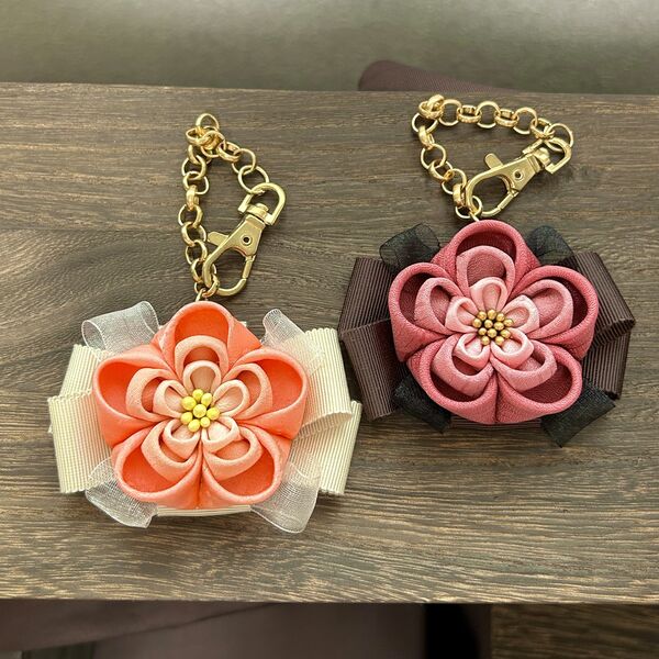 桜めぐり( つまみ細工の桜×刺繍糸のタッセル)