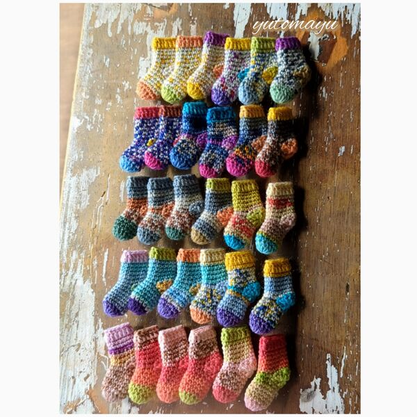 また、ミニチュアソックスのブローチは、実際のソックヤーンを使用してミニチュアに仕上げていますのでリアルに可愛いです