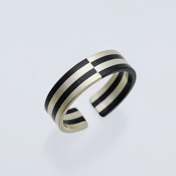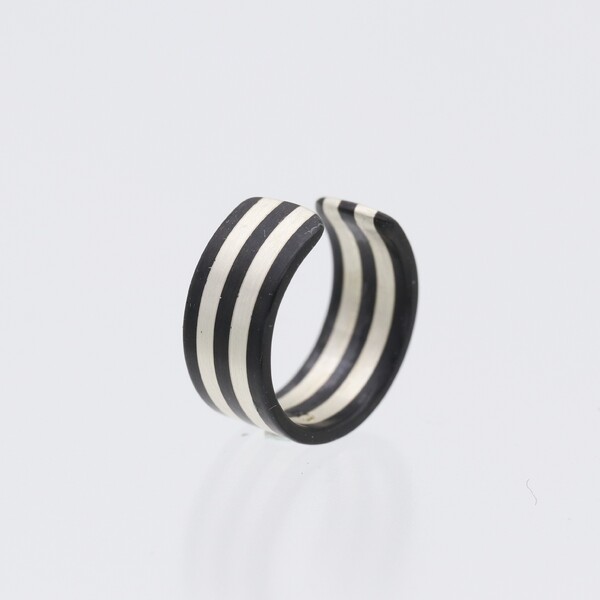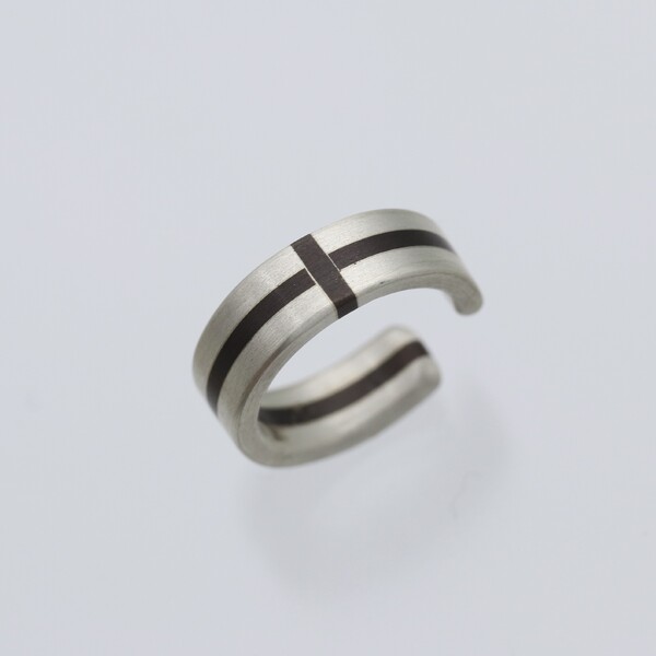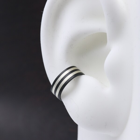 色金イヤーカフ 黒四分一✕銀 Lsize(内径12mm)