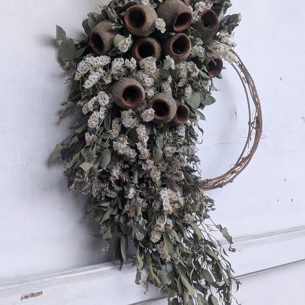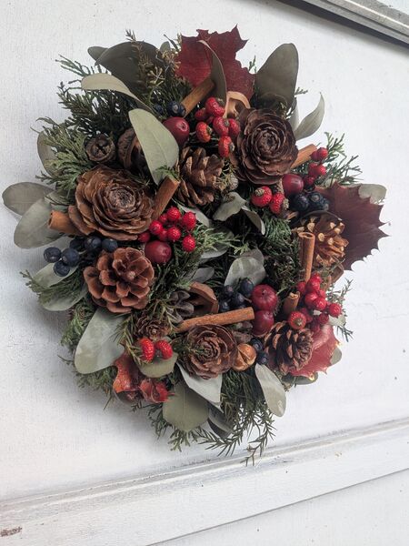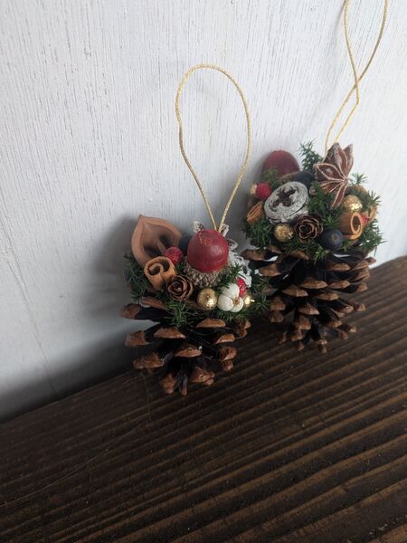 松ぼっくりリースや、木の実などの冬らしく、皆様に笑顔がこぼれるような作品を並べたいと思ってます。