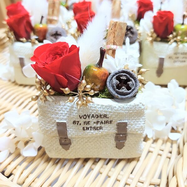 ボヤージュバッグのアレンジメント〈クリスマスカラー〉