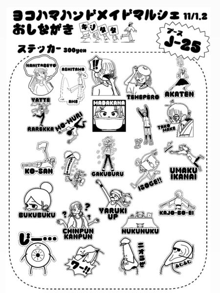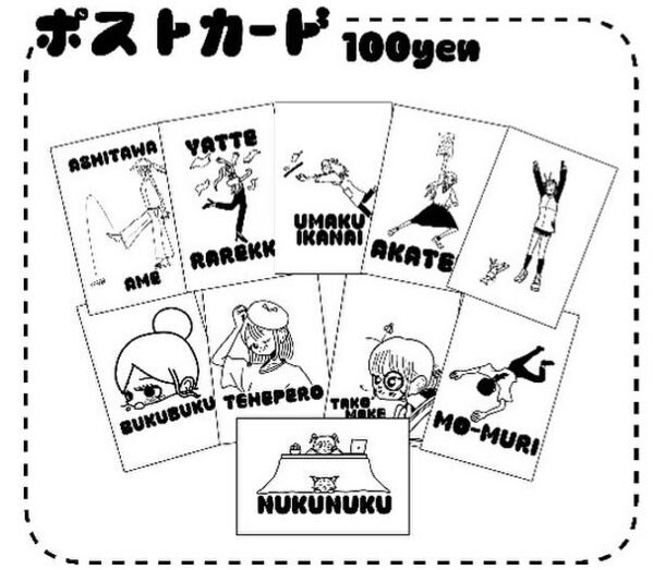 オリジナルのシンプル可愛いイラストを使用した、ステッカーやポストカードなど様々なグッズを販売します