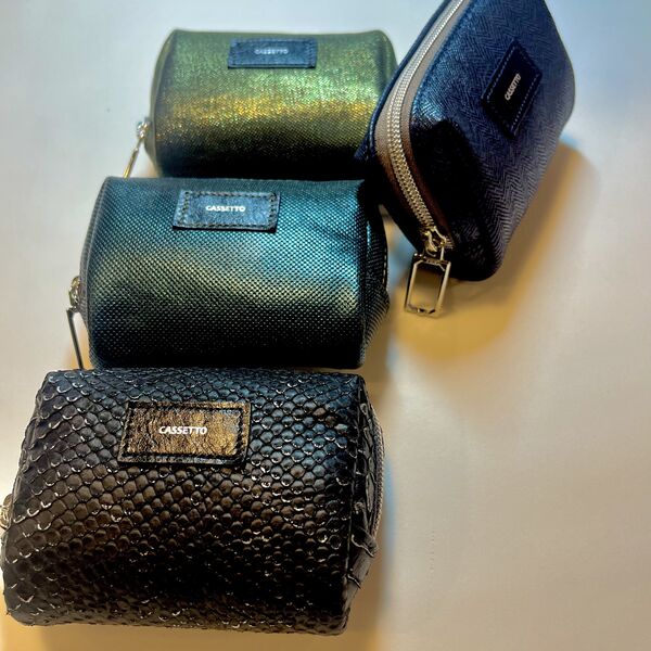 素材は、牛革をはじめラム革、ヘビ革、トカゲ革、ワニ革など色々な革を扱っています。プリントや型押しされた一点物の革も多数あり、ファスナーや金具等のパーツ選びもこだわって選んでます。帆布も質に厚みに色にこだわり、珍しいチェック柄帆布も扱っています。