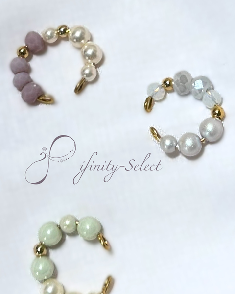 ワイヤーデザイン・天然石やガラスビーズなどを組み合わせた一点もののビジューや、レジン、揺れるビーズデザイン、取り外し可能な3wayチャームなど様々な形でイヤーカフを楽しめるよう、種類豊富にご用意しています。