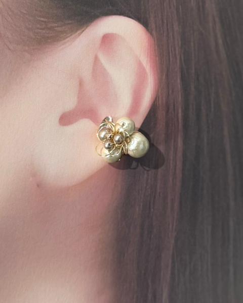 ガラスビーズの透明感やパールの艶感、ワイヤーで形作るお花の繊細さが輝く一点ものデザインがほとんど。