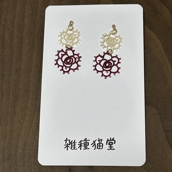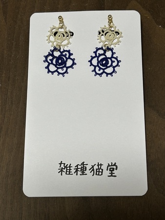 タティングレースという技法で作った、繊細なレースのアクセサリーです。