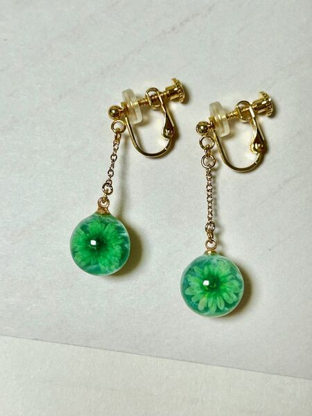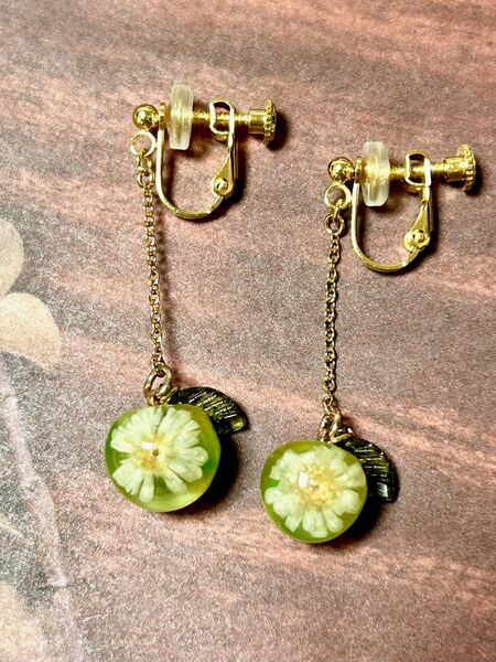 緑と黄色の花イヤリング