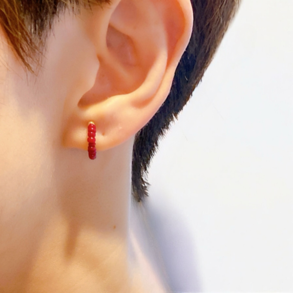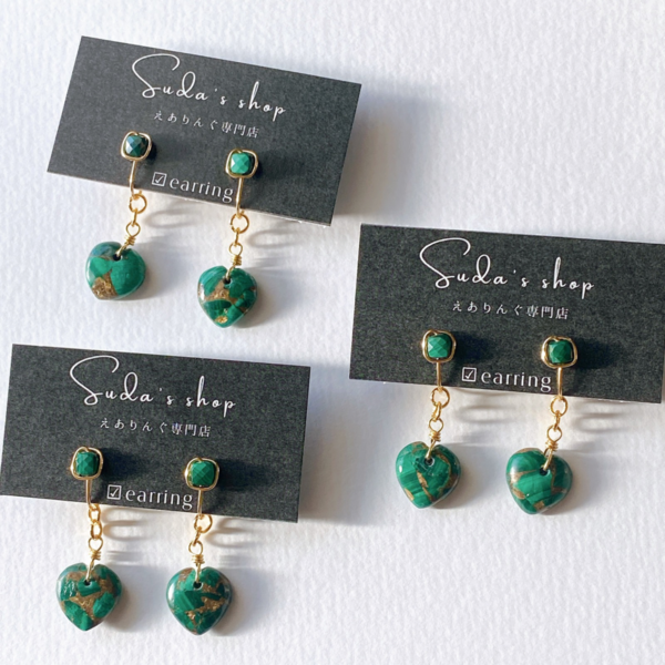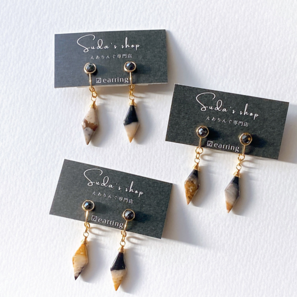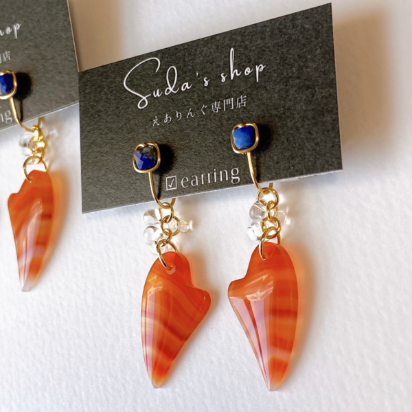 インドネシア産 アゲート ハート 痛くないイヤリング