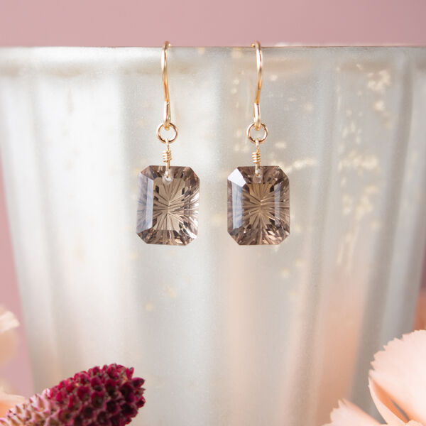 スモーキークォーツ(オクタゴン・バックカービング)のシンプルピアス(14KGF)/イヤリング