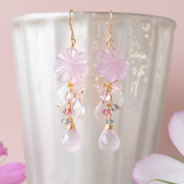 コスモス*ライラックオニキスと天然石(ローズクォーツ・オパール)の彩りピアス(14KGF)/イヤリング