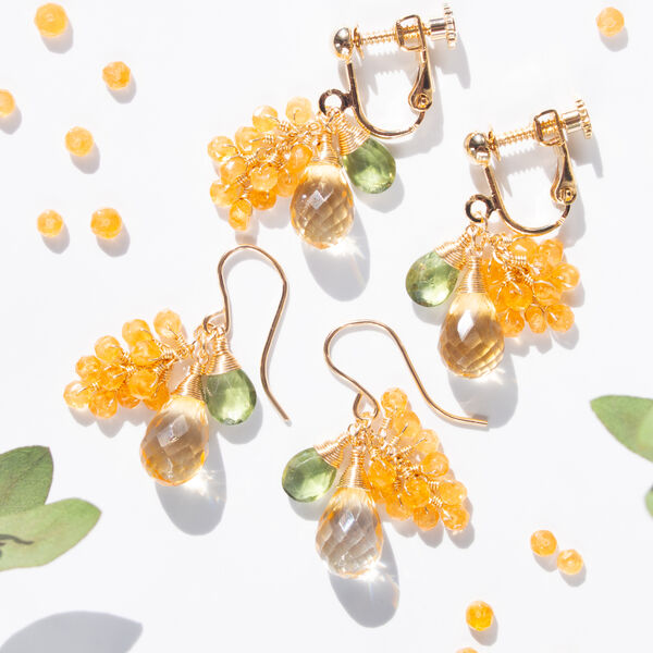 金木犀*シトリンと天然石(スペサルティンガーネット・グリーンアパタイト)の彩りピアス(14KGF)/イヤリング
