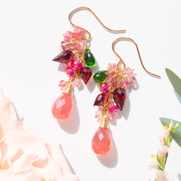 バラ*インカローズ(ロードクロサイト)と天然石の彩りピアス(14KGF)/イヤリング