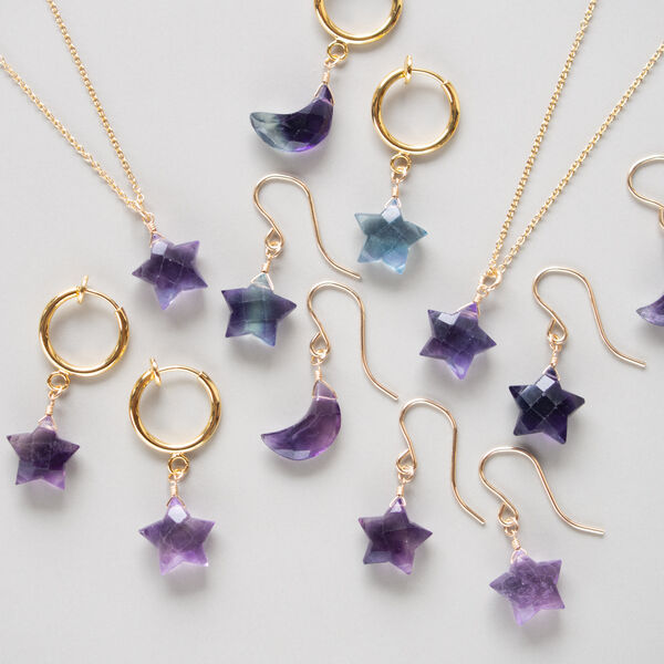 フローライトの月とお星さまのピアス(14KGF)/イヤリング