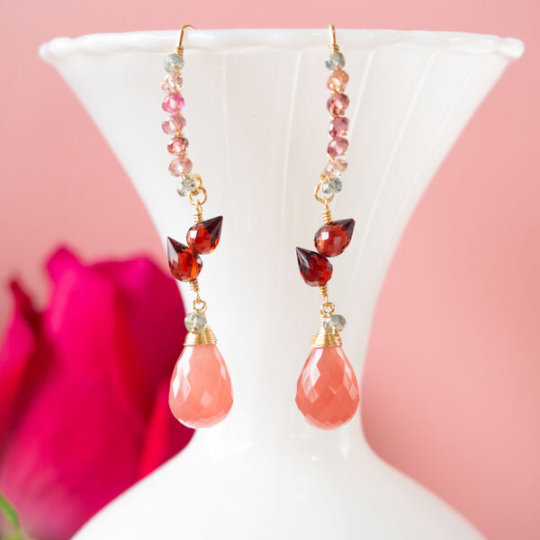 バラ*インカローズ(ロードクロサイト)と天然石のフックピアス(14KGF)