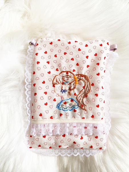 ポニーテールの女の子の刺繍で作ったショルダーポーチ!