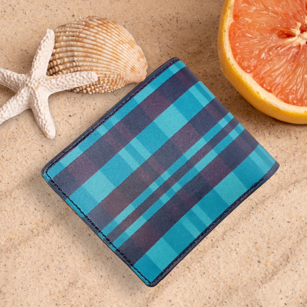 本革 チェック ブルー 二つ折り財布