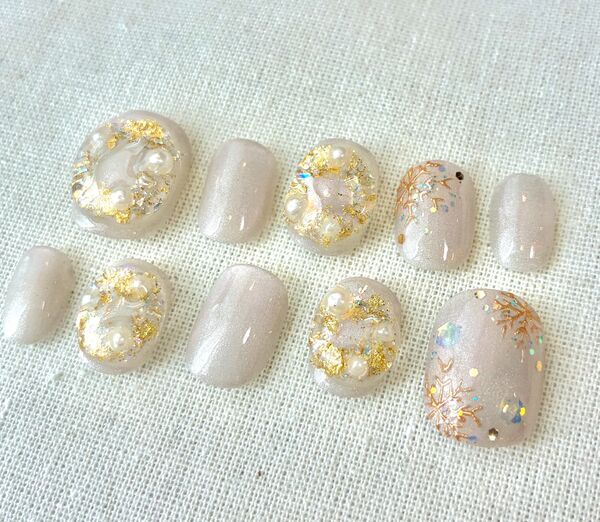 雪の結晶が可愛いキラキラ冬ネイルチップ