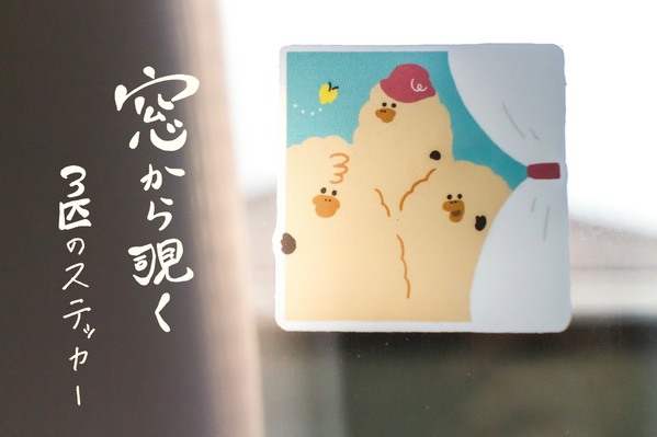 窓から覗く3匹のステッカー