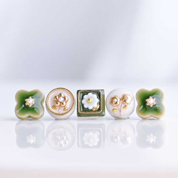 美濃焼タイルのピアス・イヤリング 5つセット