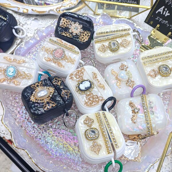 光に当たるとキラキラと宝石のように輝く唯一無二のスマホケースやスマホリング、ショルダーストラップ等の小物アイテムも豊富に揃っています。