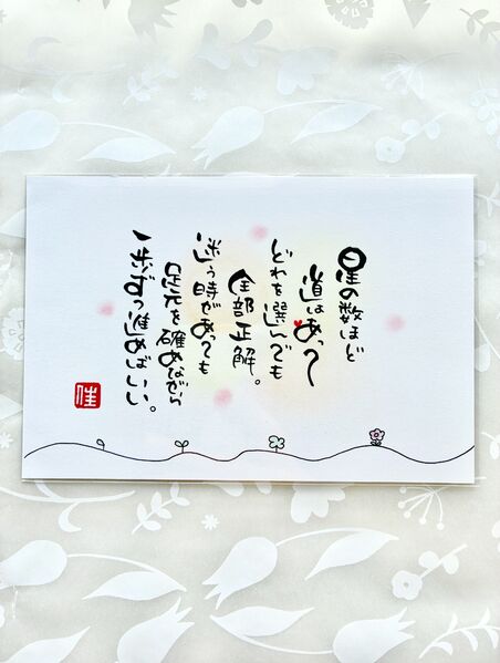 筆文字のカレンダーやピンバッチ、「きみの心のさぷり缶」、ポーチなどの布系小物、原画フレーム、スマホのインナーシートなどを販売します。