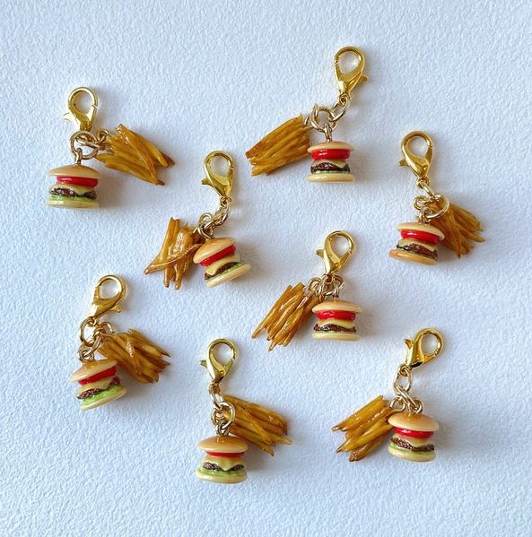 指先サイズの山盛りポテトとハンバーガー キーホルダー