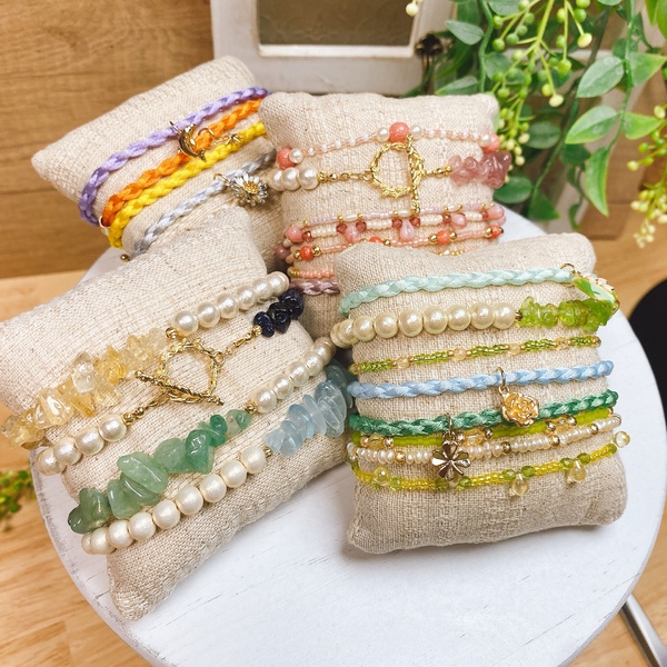 カラーをテーマとした糸、ガラス等を使用した様々なアクセサリー、雑貨の販売をいたします。