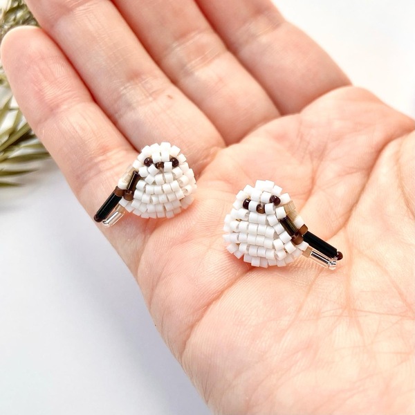 シマエナガ/ビーズ刺繍ピアス、イヤリング