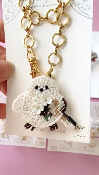仲良しシマエナガ/ビーズ刺繍ブローチ