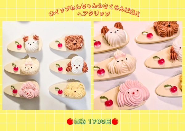 ホイップわんちゃんのさくらんぼ添えヘアクリップ