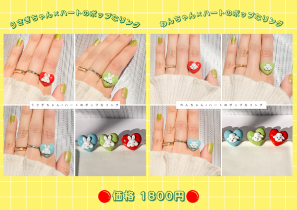 うさぎちゃん/わんちゃんのハートのポップなリング