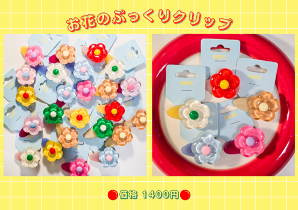 ヘアクリップやヘアぱっちんでは、対面販売のみで現在販売中!この機会に是非ゲットしてね!!