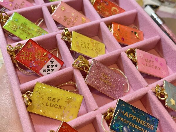 大人の女性向けに前向きな言葉を入れたキーホルダーや、あの頃憧れていた女児向けおもちゃのようなキラキラの可愛らしさ、懐かしさと新しさを融合した面白い作品を作っています。