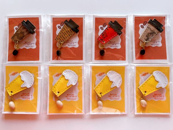 レザーテイクアウトコーヒーとレザービールのブローチ