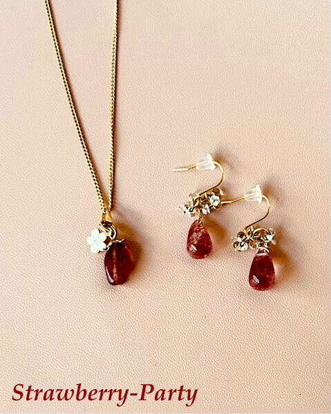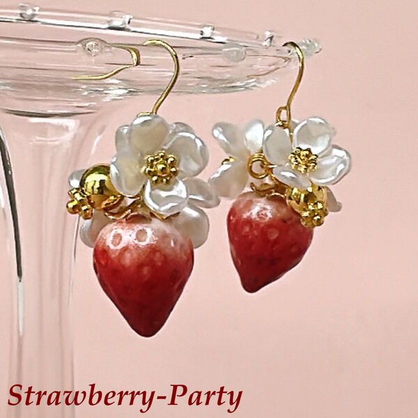 フラワータッセルのいちごちゃん ピアス/イヤリング