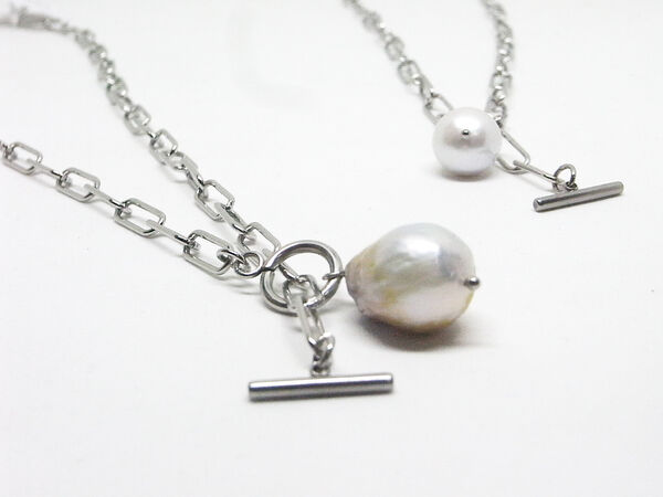 [nimili]ステンレスチェーン×淡水パールネックレス各種