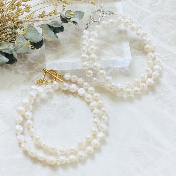淡水パールとガラスビースを使ったステンレスアクセサリー