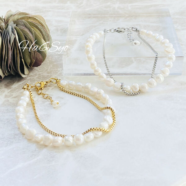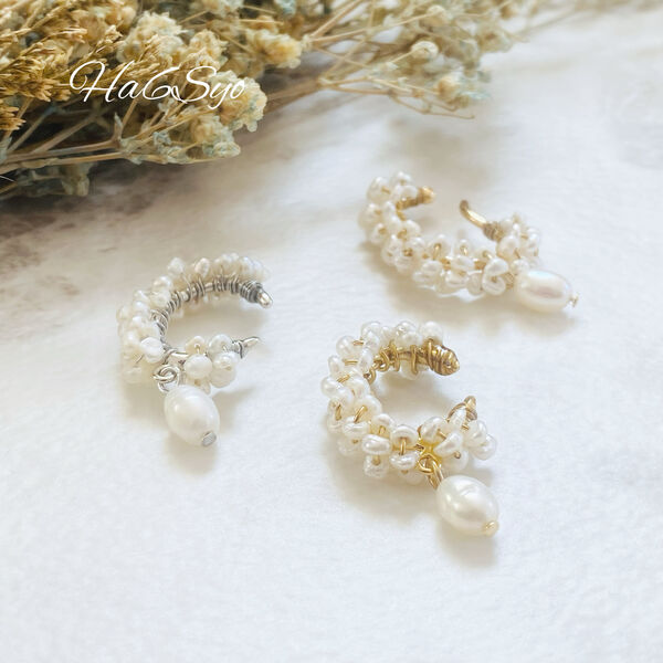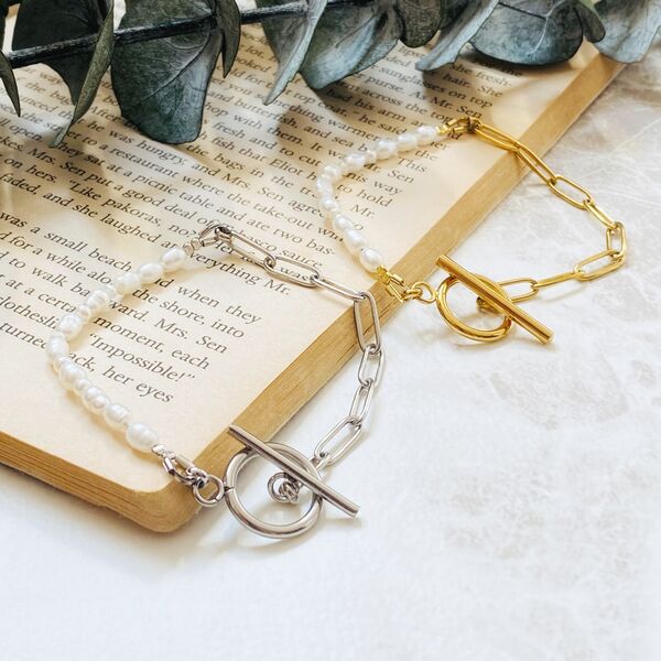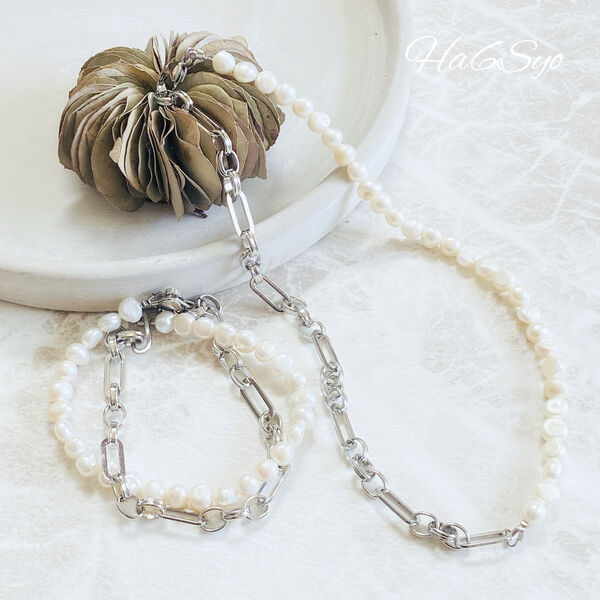 淡水パールとガラスビースを使ったステンレスアクセサリー