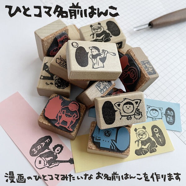 「挿絵のある日常」をコンセプトに、日々の文房具として使えるはんこを制作しています。