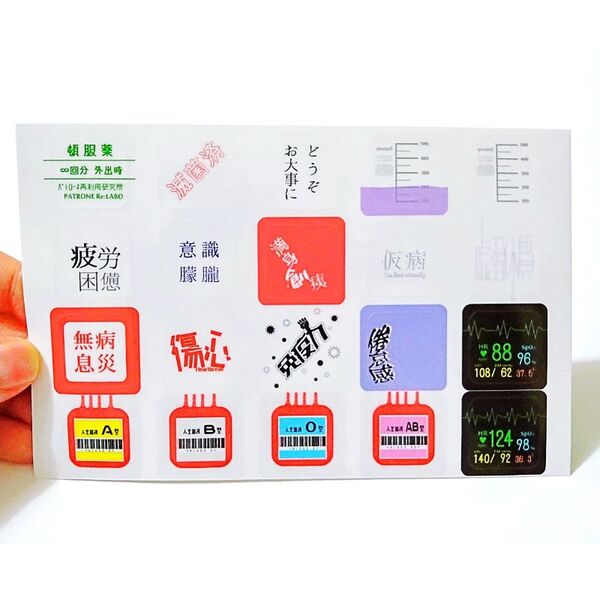 お薬トートバッグ・常備薬バッグ・常備薬ケース・非常食ランチボックス・常備薬&非常食巾着・識別リストバンド・一筆処方箋などの医療モチーフ雑貨、医療系バッチ・健康おみくじ・カプセルシートキーホルダー・一包化キーホルダーなどのアクリルグッズ等。