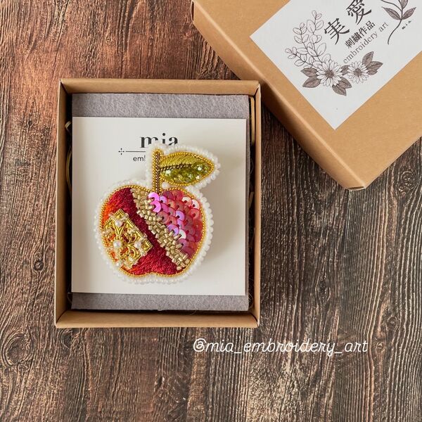 キラキラ林檎の刺繍ブローチ