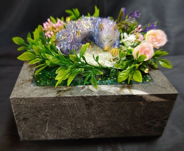 【宝箱】眠り狼オブジェ アートフラワーVer【箱庭シリーズ】